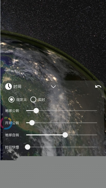 4. 地球与月球公转设置:提供地球自转、公转以及月球公转和时间快慢的设置功能,让用户看到不同的地球运行动态,增加了软件的趣味性和教育性。