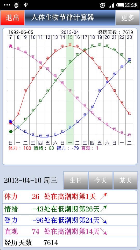 1. 趋势预测:软件能够根据用户的出生日期和当前日期,预测未来的生物节律变化趋势。