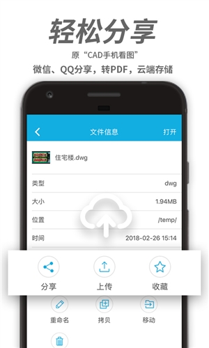 1. 多端同步:支持微信、qq、邮件等多种方式分享图纸,同时支持百度网盘、dropbox等云存储,实现手机、平板、pc端文件同步,方便用户随时随地查看与编辑图纸。