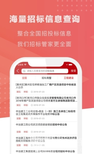 1. 招标信息查询:提供全面的招标信息查询功能,涵盖建筑、医疗、教育等多个行业。