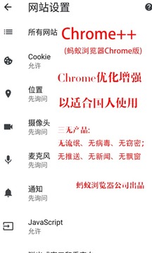 chrome蚂蚁提供了多种主题和界面定制选项,用户可以根据自己的喜好来个性化设置浏览器界面,提升用户体验。此外,它还支持多标签页浏览、无痕浏览模式等实用功能。3.