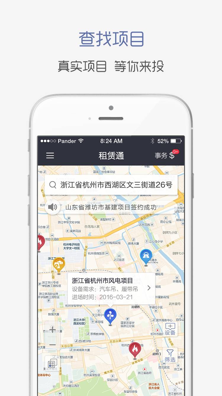 设备租赁场景:建筑机械、施工单位等需要吊车设备的场合,用户可以通过租赁通快速找到并租赁到合适的设备。2.
