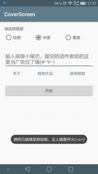 刷屏神器官方是一款专为社交应用设计的安卓软件,它以其强大的刷屏功能和简单易用的操作界面赢得了广大用户的青睐。无论是想要吸引关注、清理屏幕还是制造趣味,刷屏神器官方都能满足你的需求。该软件支持多种社交平台,如微信、qq等,能够迅速提升用户的社交影响力。通过内置的多档刷屏强度选择,用户可以灵活调整刷屏速度,使刷屏效果更加符合个人需求。此外,软件还加入了独特的刷屏小尾巴功能,让刷屏变得更加有趣和个性化。