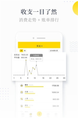 2. 多维度统计:通过图表形式展示日均花费、收支构成等,帮助用户清晰了解财务状况。