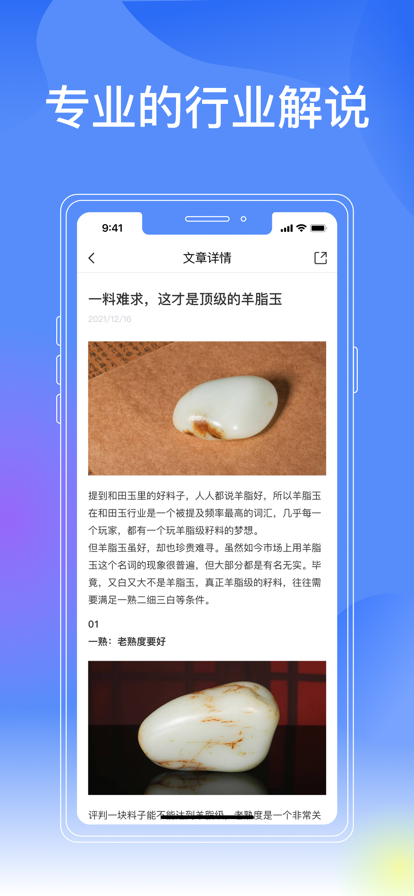 1. 浏览学习:用户可以在软件内浏览各种和田玉相关的文章、图片和视频,深入了解玉石的各个方面。