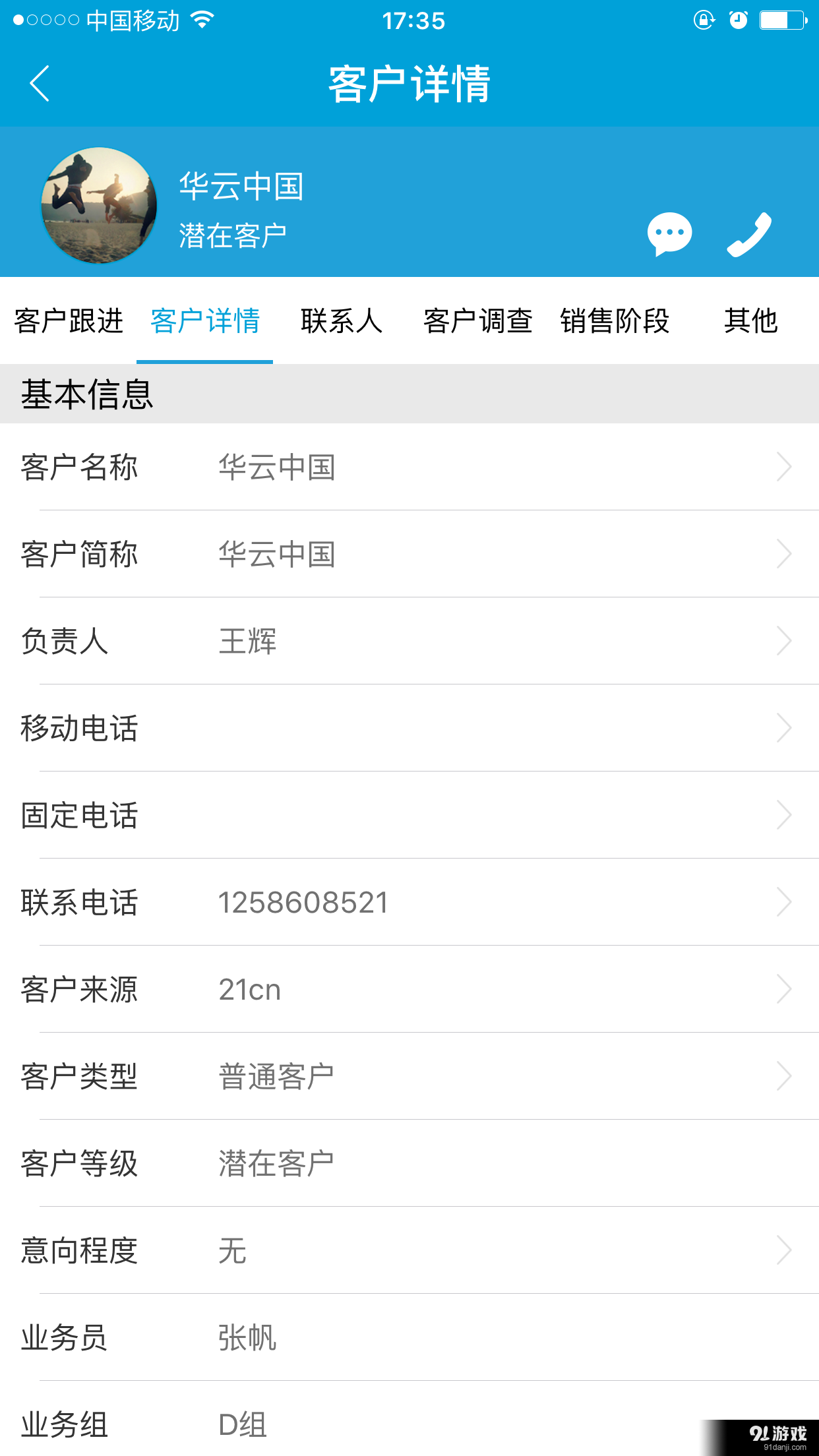 2. 客户资料一站式管理:客户资料涵盖个人信息、教育背景、社会关系等基本资料,并自动记录通话、短信、任务等往来信息,实现一站式查询整理。