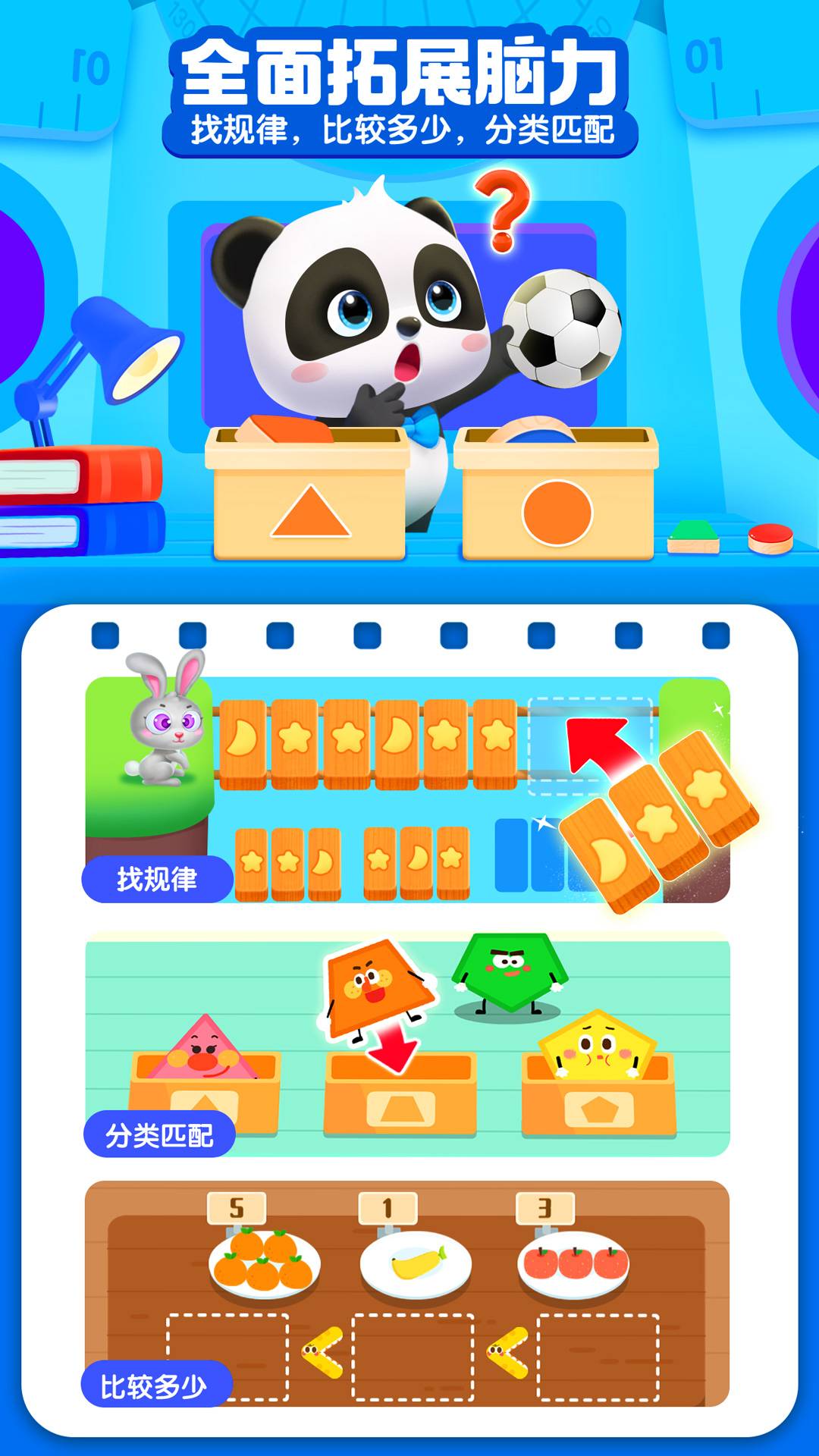 2. 海量脑力启蒙内容:包含“数与量”、“几何空间”、“逻辑关系”、“数运算”四大领域,持续更新中。