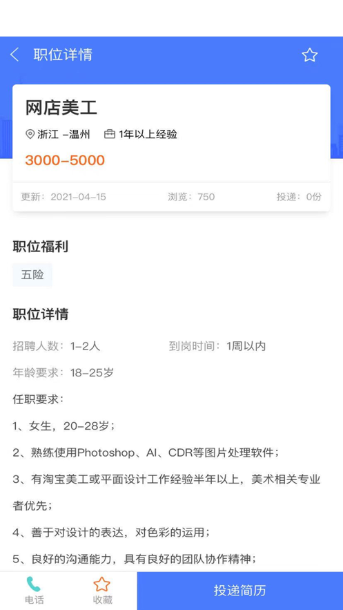 2. 简历投递:求职者可以在线编辑简历,并一键投递至心仪的企业或职位。