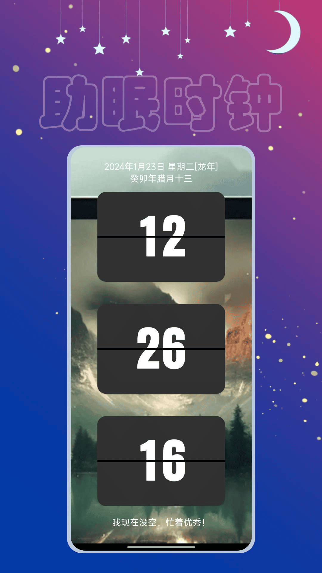 助眠时钟官方软件是一款专为改善用户睡眠质量而设计的安卓应用,由北京畅联在线科技有限公司开发。这款软件结合了全屏数字时钟、多种白噪音背景音效以及个性化的定时功能,旨在帮助用户更快地进入睡眠状态,提升睡眠质量。其精美的ui设计和丰富的时钟样式选择,使得用户在睡前时光能够享受到更加舒适和宜人的体验。