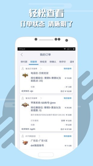 show91游戏代练是一款专注于为游戏玩家提供高效、安全代练服务的安卓应用。无论你是希望在热门游戏中快速提升段位,还是寻找专业的游戏陪玩伙伴,show91都能为你提供一站式的解决方案。平台内聚集了众多游戏大神,他们凭借精湛的技术和丰富的经验,为广大玩家提供优质的代练和陪玩服务。