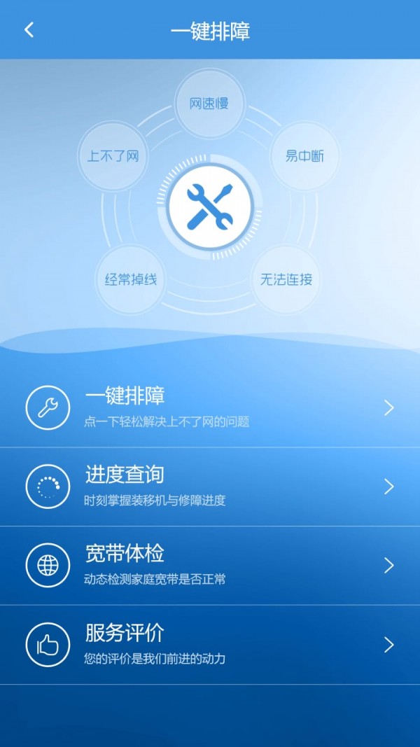 3. 故障报修与查询:当网络出现故障时,用户可以即时通过app进行自助排障、报修,并实时查询维修进度,提高解决问题的效率。