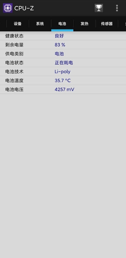 5. 电池参数显示:查看电池健康状态、剩余电量、电池温度等参数。