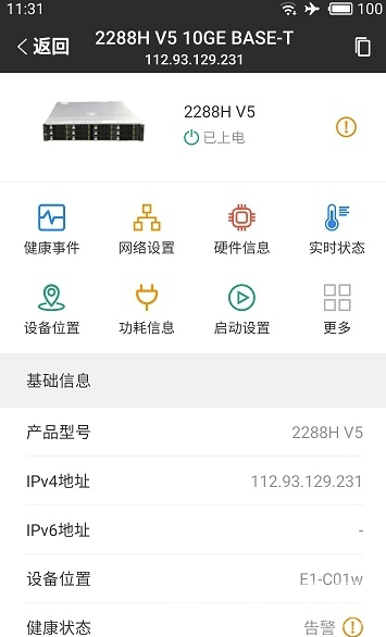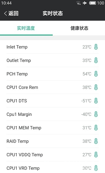 1. 实时更新设备的温度和健康状态,用户可以随时掌握服务器的运行状况。