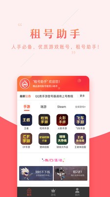 2. 打开软件:安装完成后,打开租号助手app,选择要租的游戏。