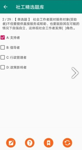 社工精选题库(社工精选题库职业资格助手)安卓正式版是一款专为社会工作者备考打造的专业题库应用。这款软件汇集了多年来社会工作者职业资格考试的真实题目及相关详细解析,有助于考生系统复习和高效备考。它支持随机练习和分类练习,提供多种做题模式和功能,以满足不同考生的备考需求。