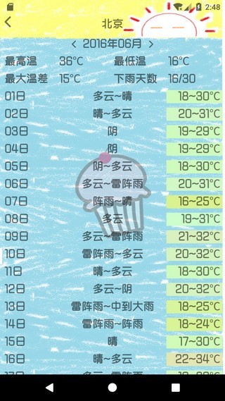 2. 实用性:无论是出行计划、气象研究还是日常生活,历史天气都能为用户提供有用的参考信息。