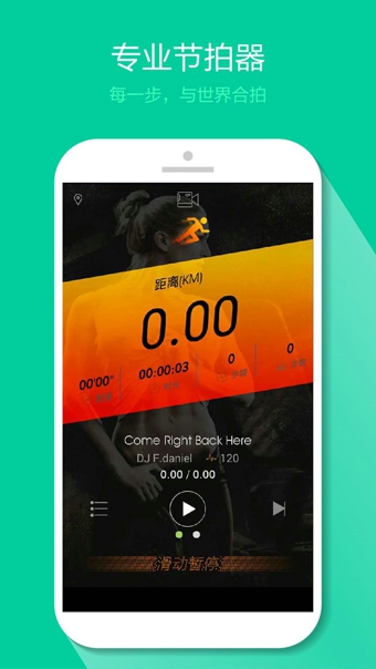 2. 科学运动指导:应用内置专业节拍器,结合独特算法,通过合理节拍控制运动步频、步幅、呼吸及节奏,提供专业跑步指导。