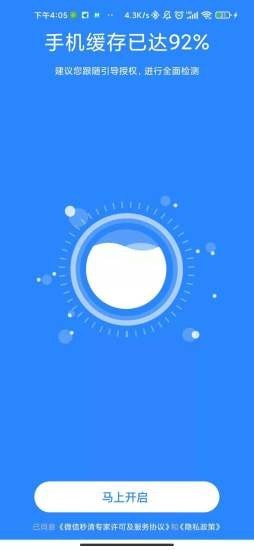 1. 打开微信秒清专家应用,点击开始扫描按钮。