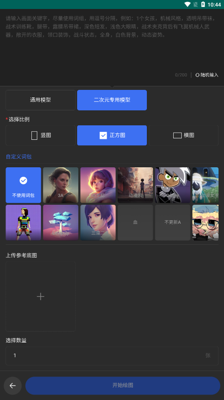 2. 选择绘图模式:根据需要选择文字绘图、以图绘图或内容绘图等模式。