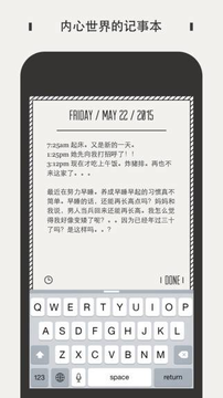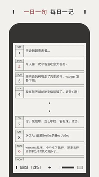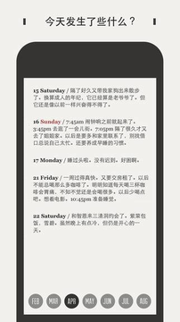 daygram的时间轴设计独具匠心,每一个点代表一天,红色的点代表周日,点击圆点即可进入相应的时间。完成日记记录后,相应的圆点会被日记预览文本框所替代,方便用户回顾之前的日记。4.