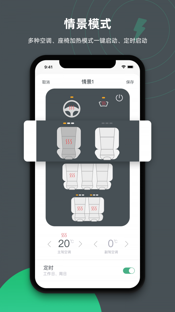 2. 智能情景模式:预设多种情景模式,如上班模式、下班模式、午休模式等,一键激活即可自动调整车辆设置,让驾驶更加舒适。