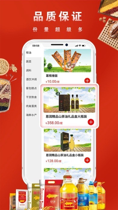 品类大量。肉禽蛋类、海鲜水产、干货熟食、餐包糕点、酒饮冲调、粮油调料、蔬菜生果……不同食材及产物,品类齐备。