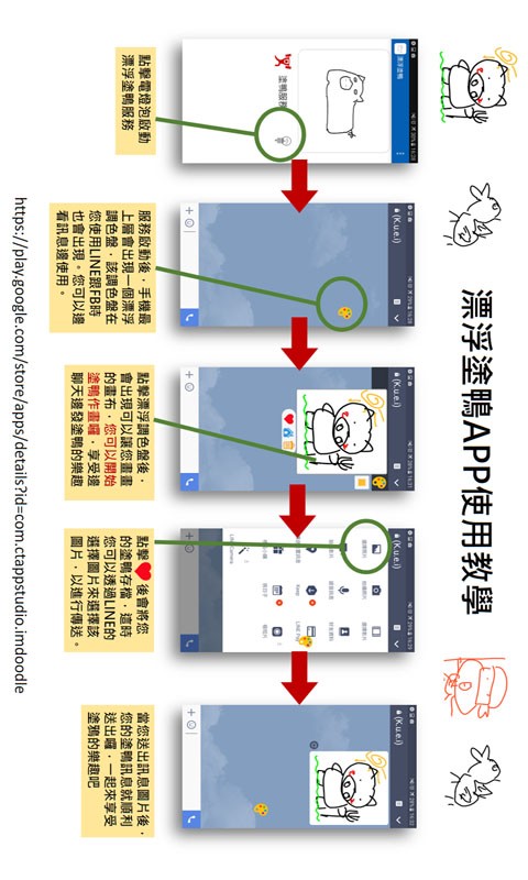 漂浮涂鸭APP启动後,将产生一漂浮视窗,该漂浮视窗跟FB的聊天介面上都能出现。