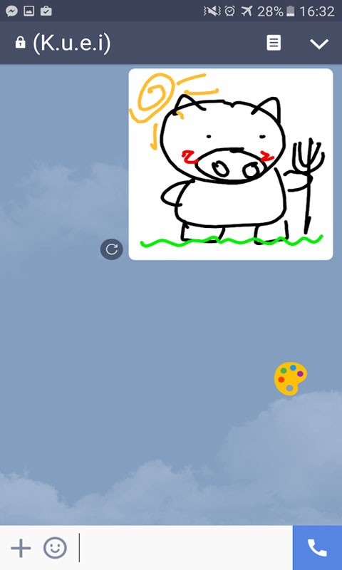 3. 点击漂浮调色盘後,会出现能够让您画画的画布,您能够开始涂鸭作画罗,体验边聊天边发涂鸭的欢乐。