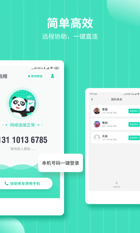 熊猫远程帮助官方版拥有非常强大且好用的远程操纵功能,使用这款软件,用户不需要root权限就能够对手机开展远程操纵,非常方便,功能也十分强大。利用使用这款软件,用户能够方便开展很多事情,比如打电话,传输文件,或者是教自己的父母长辈使用手机。总的来说这款熊猫远程帮助官方版非常简单好用,有需要的朋友能够下载体验!