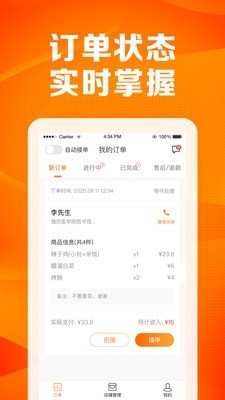 商家可经由牧小宝商家端app开启定单确认等受理操作。