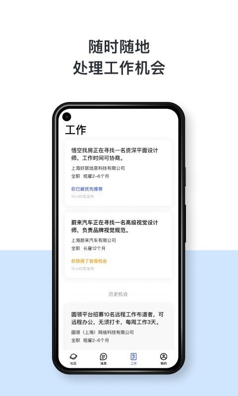 圆领工作者app让你工作更加认真。你能够使用该软件将你的工作与生活给分开,你能够利用该软件与你的同事开展交流沟通,让你的工作效率不断提高,让你处理问题的水平不断增长,让你工作的完成度更高。