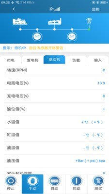 可检查市电电压、频率;发机电输入电压、频率、负载电流、视在功率、有功功率、无功功率、本次发生电能、累计发生电能,策动机转速、机油压力、冷却水温、燃油余量、电瓶电压、本次运转时间、累计运转时间、开机次数,基站后备电池组及时电压等参数。