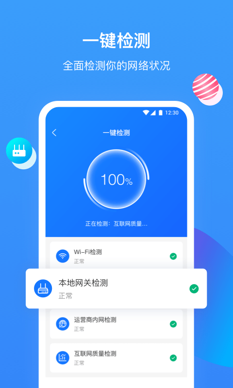 【一键诊断】一键检测WiFi、网关、经营商内网、互联网的网络质量情况,全方位定位网络问题