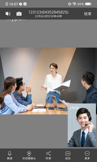 主持人能够操纵嘉宾禁音,解除禁音,操纵观众端视频焦点界面,开展会议录制及其他功能
