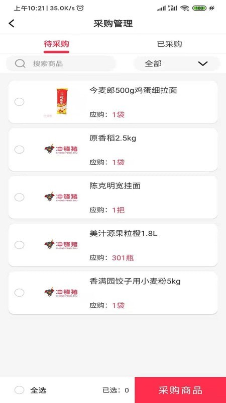 冲锋猪采购端app能够帮助采购人员更便捷的采购所需要的产品,并且平台上所有的产品质量有保障且价格优惠,能够为朋友们节约非常多的成本,为工作带来了极大的效率,假如这款软件能够对你有所帮助,赶紧下载体验一下吧!