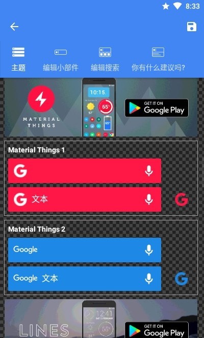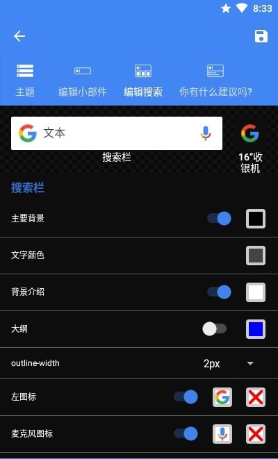 包括预制主题,可迅速将主题迅速运用到搜索栏。