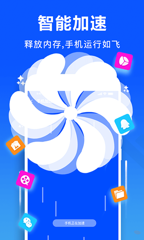 手机一键加快:手机无用文件,加快手机运转速度,释放内存;