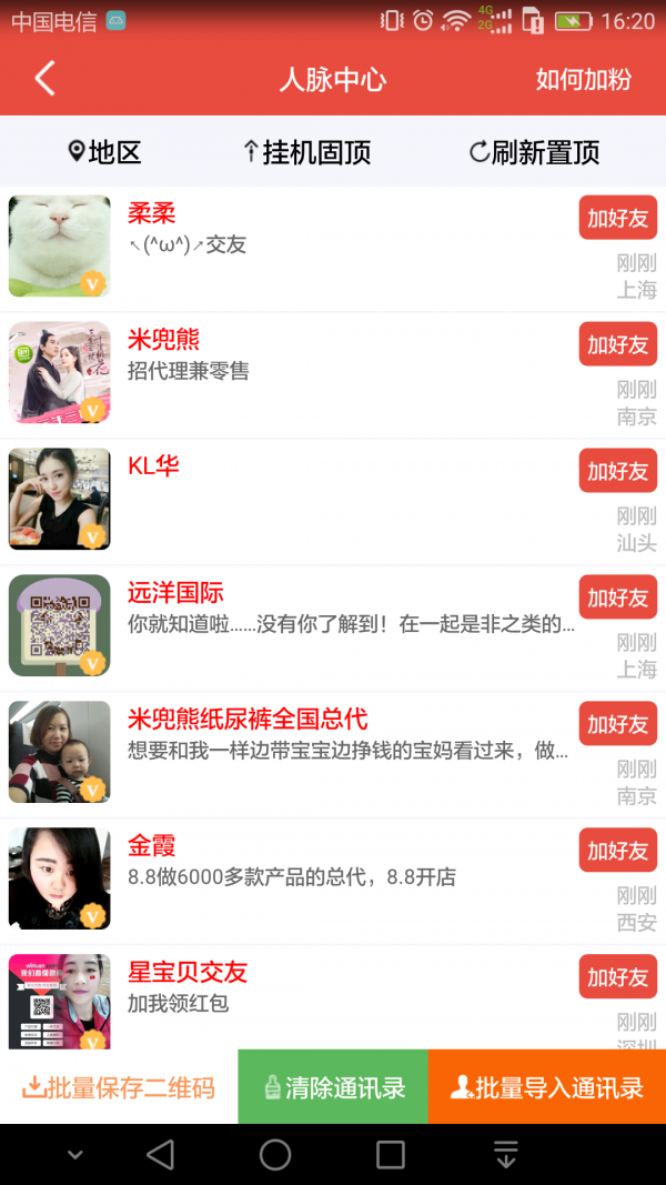 百万人脉随便加,上传二维码可坐等被加;