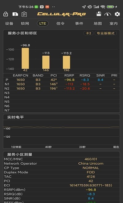 CellularPro app能够为用户们时实给予网络的详细资料,能够了解网络信号的强弱,并对网络开展优化,提升网络的速度,另外还会对故障网络开展检测,给予故障网络的详细情况,便于用户们对故障网络即时开展维修,提高维修的效率。