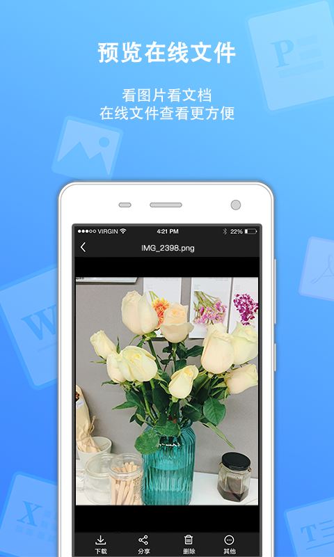 “谁借我U盘用一下?”——办公文件上传该软件,手机同步查看,支持Word、PPT等文件格式。