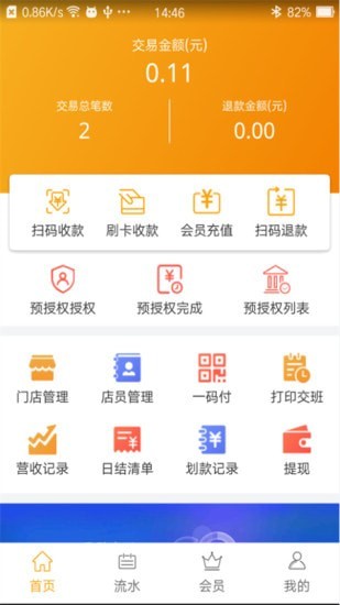 收款:商户可迅速开通微信支付、支付宝等支付方式,支持消费扫描支付、刷卡支付,收款便捷