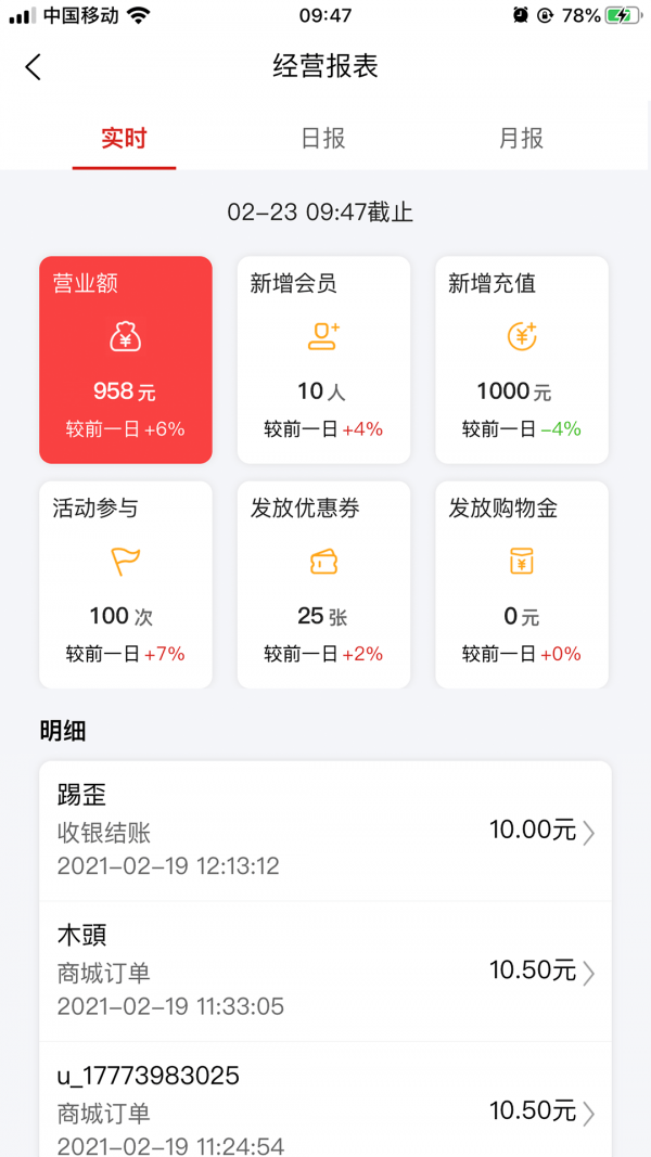 流量、买卖、会员行动、活动结果、本钱解读等焦点数据一手把握,拾我云店肆app帮忙您高效经营店肆。