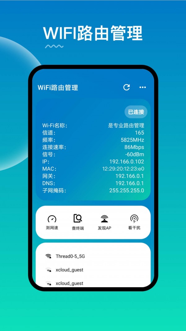 WiFi路由器管理app能够帮助用户们更加高效地对路由器开展管理,能够时实查看路由器的连接情况,避免用户测网,也能够时实查看网速详情,使朋友们连接WiFi更加稳定,不会出现断连的情况,当路由器运行出现异常也会及时提醒用户们查看维修。