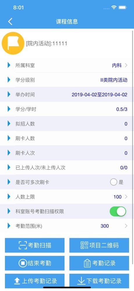 详细模块包含:获得课程列表,考勤扫描、开启考勤、查看考勤记录、上传考勤记录、清空考勤记录、下载考勤记录、个人信息查看