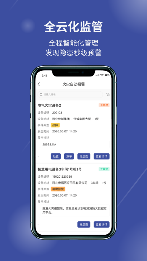 艾帝安智慧消防app能够让朋友们时实查看用电的详细情况,当用电出现异常时能够及时知晓并处理,保障群众们的用电安全,如遇火灾时软件会自动开展报警,让消防人员能够及时到达现场处理,软件的监控功能非常强大,能够对于各种用电情况快速预防,为朋友们的工作带来了极大的便利。