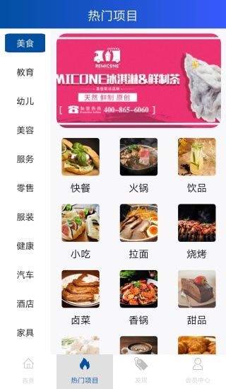 1、用户能够在软件中寻找丰富的创业范畴,包含美食、教育以及美容和服务等等,让用户自由挑选