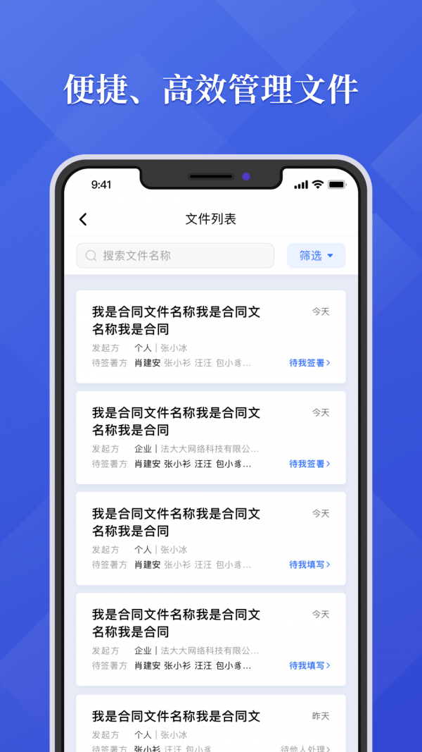 便捷:打破地域限制,免去线下繁琐步骤,随时随地签发、查阅合同,高效协同