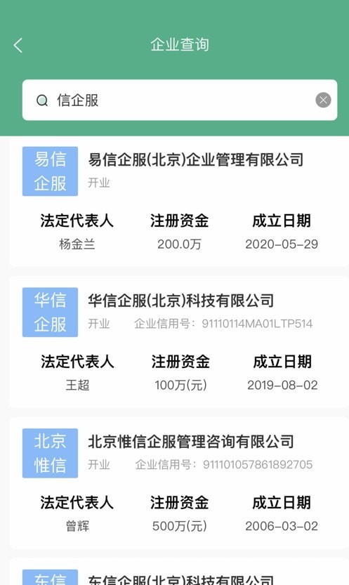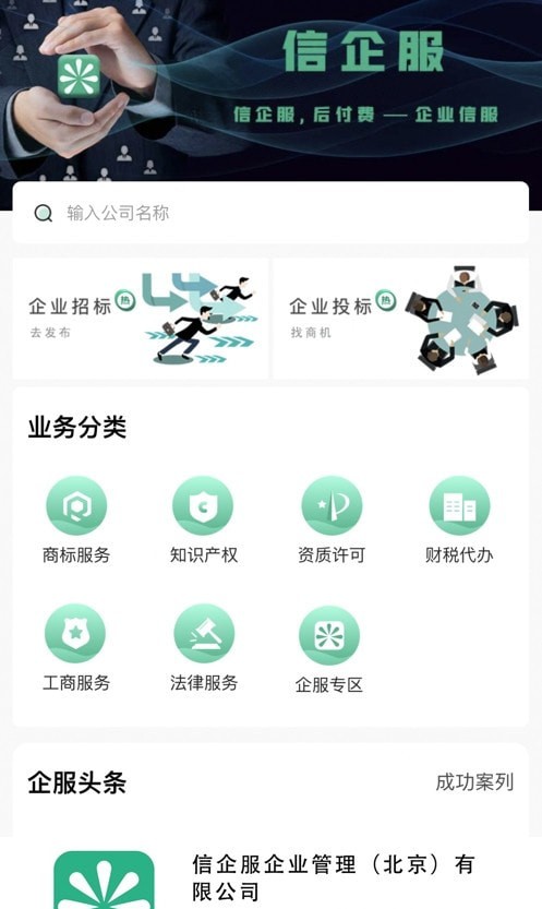 信企服app为企业给予了招标投标、商标注册、行业信息查寻、财税办理等等业务,能够有效地处理企业的各种业务问题,提升企业业务办理的效率,帮助企业能够更快地发展,也能够第一时间处理企业所存在的各种风险问题,假如这款软件能够对你的工作带来帮助,赶紧下载试一试吧!