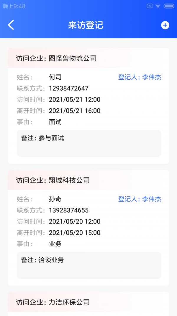 2、能够随时线上考勤打卡,还供给了来访挂号、电梯办理等性能;