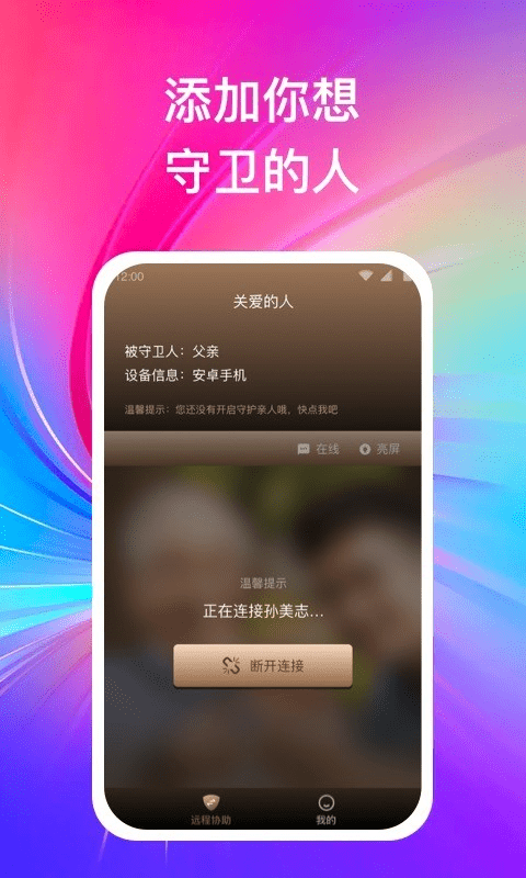 远程守卫app能够帮助用户们远程操控手机屏幕,能够在一部手机中完成对另一部手机的操作,操作比较容易便捷,延迟非常低。使用这款软件能够让子女远程操纵父母的手机,处理父母在使用手机时碰到的问题,软件的内存非常小,在使用过程中不会对手机的运行造成任何影响,简单完成远程帮助操作。
